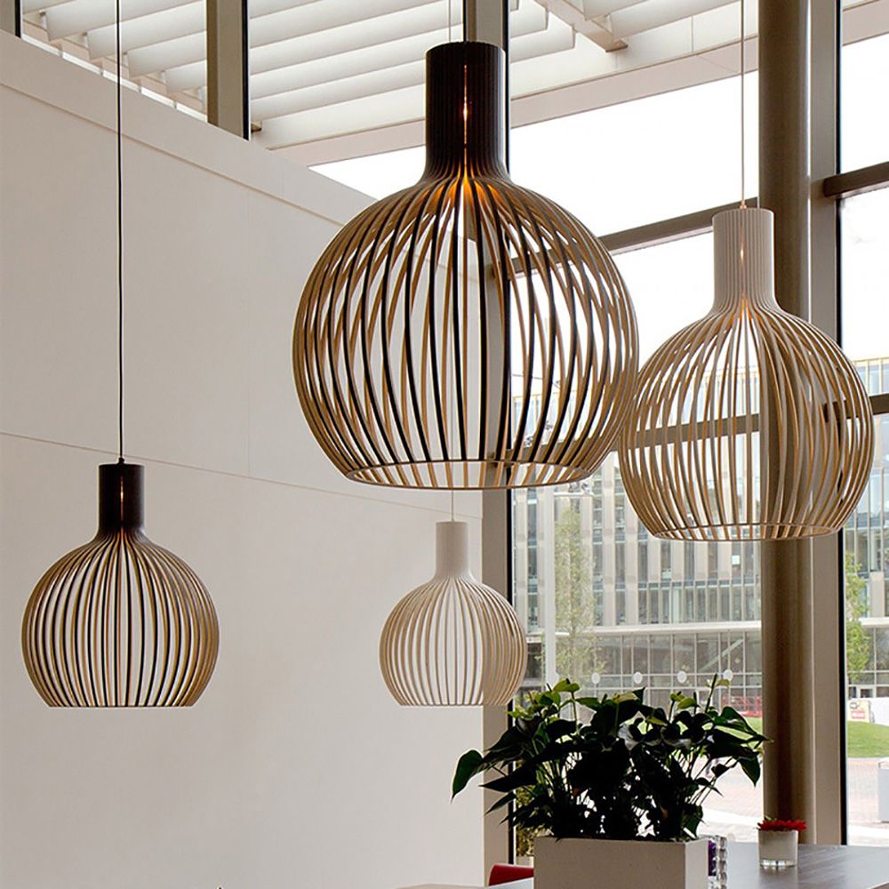 1️⃣ 鳥かご形ペンダントライト(椴木材)