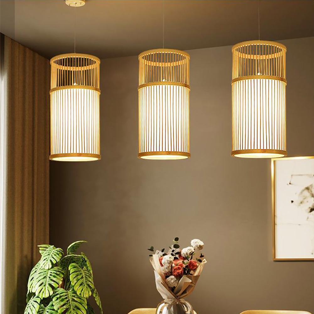 3️⃣ 和モダン提灯型ペンダント(竹木材使用)