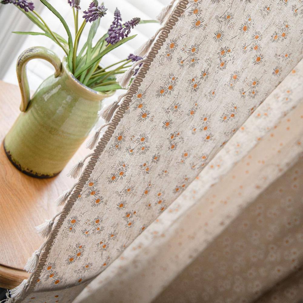 薄いベージュの生地に、ふわふわのたんぽぽの綿毛が浮かんでて、裾には細いフリンジがついてる。
