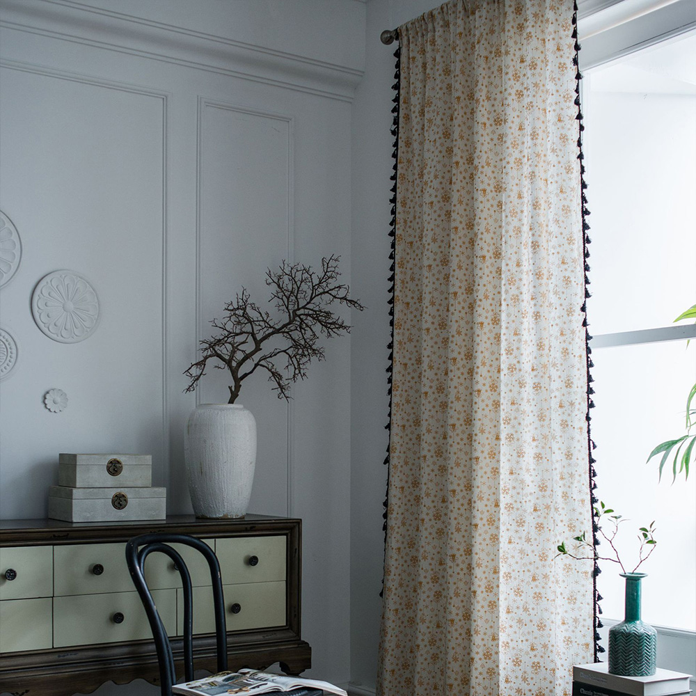 2枚目:小さなベルが描かれた「おしゃれさんカーテン」